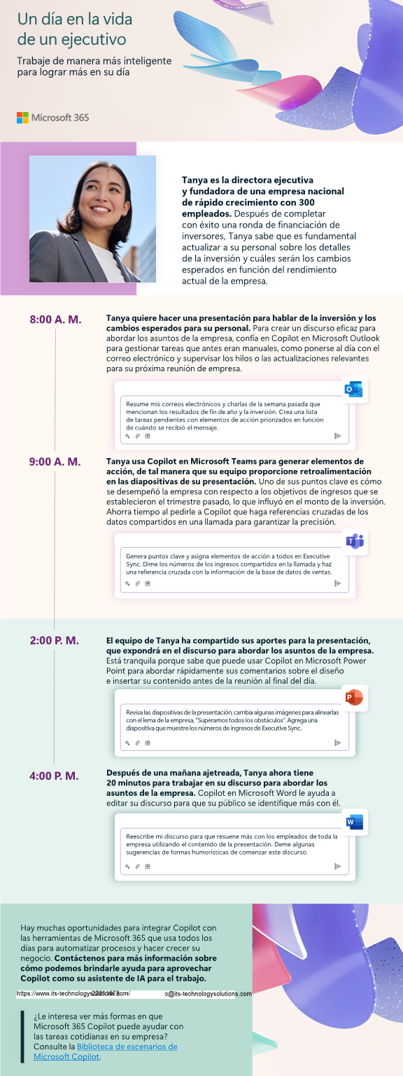 Como #Microsoftpartner, podemos guiar su viaje de transformación #AI para implementar Microsoft 365 #Copilot para que sus ejecutivos puedan concentrarse en su trabajo crítico y optimizar las tareas repetitivas que requieren mucho tiempo. Descargue nuestra infografía para obtener más información.