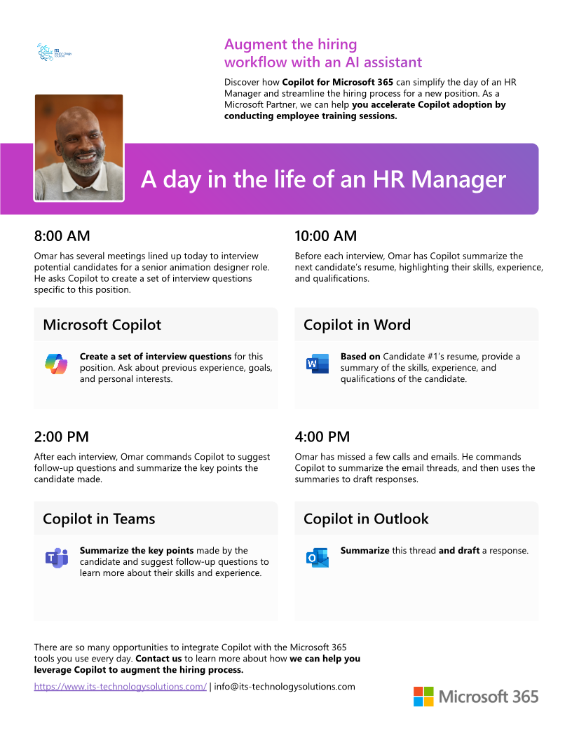 When you bring Copilot for Microsoft 365 into the productivity apps you use every day, you have a virtual teammate who can take on your most time-consuming tasks. As a Microsoft Partner, we can assist your team in optimizing Copilot for a more efficient workday.